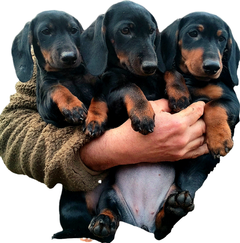 Lyhytkarvaisia mäyräkoiran pentuja ajavista linjoista